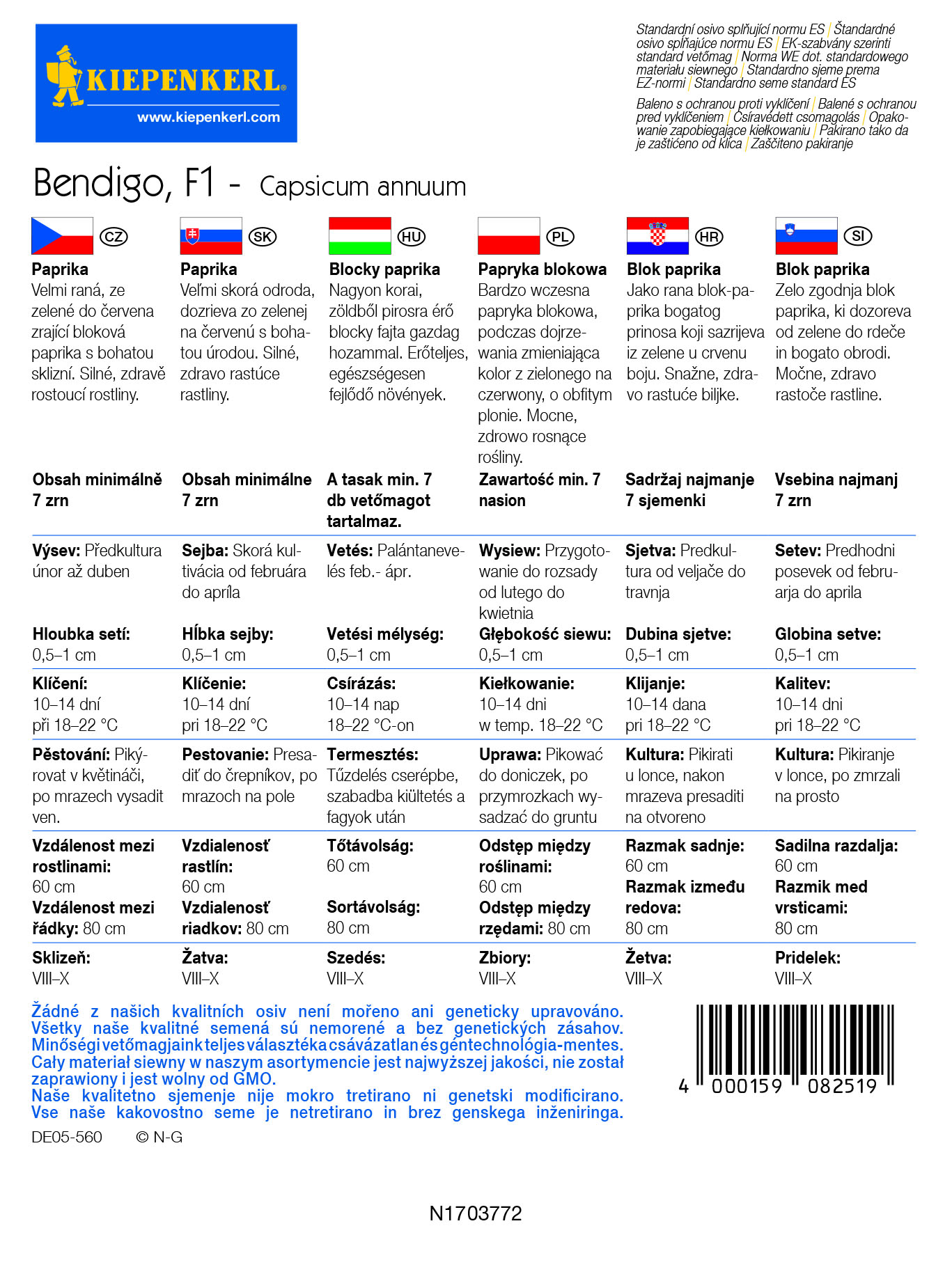 Sadržaj paketa:1 kom Vrlo rana paprika. Kako sazrijeva tako mijenja boju iz tamno zelene u crvenu. (7 sjemena)