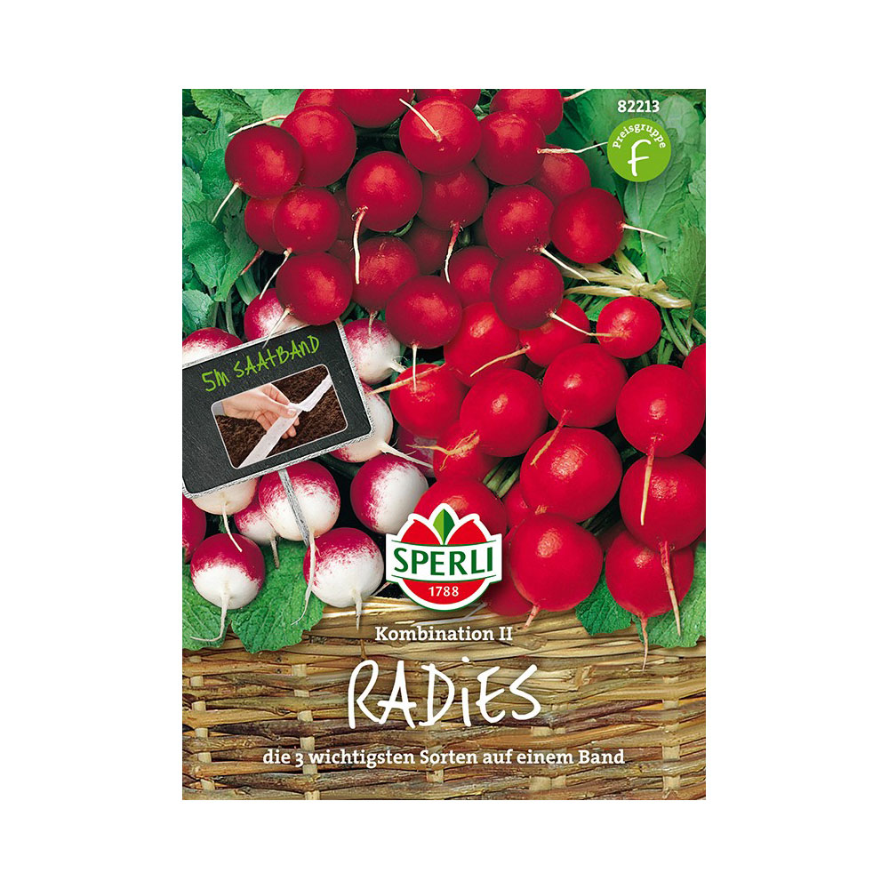 Sadržaj paketa:1 kom Miks rotkvice sadrži 3 vrste rotkvice: velika rotkvica, Parat i crveno-bijelu okruglu rotkvicu. Duljina trake je 5 m.