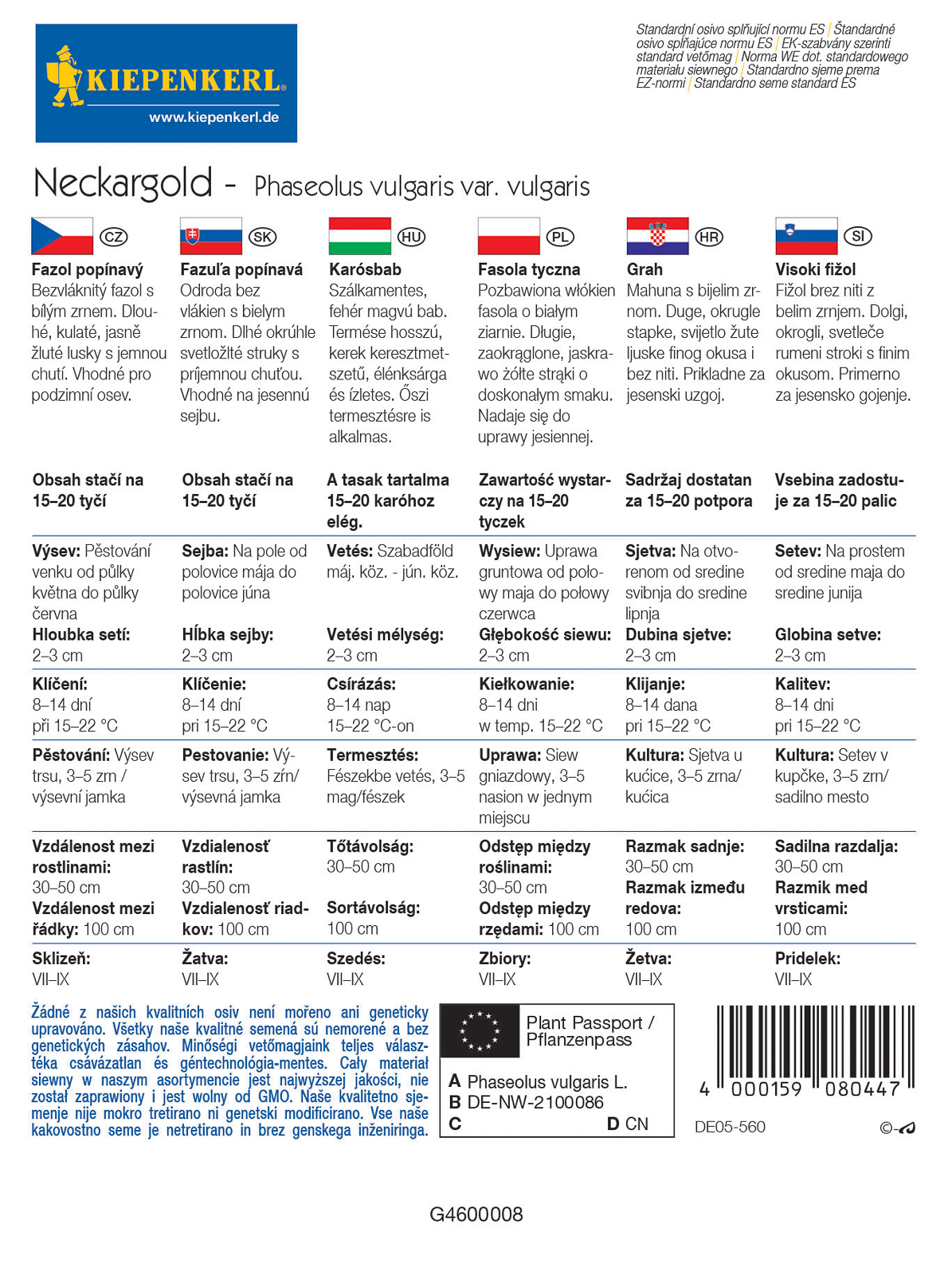 Samen Stangenbohnen Neckargold - Broj artikla 9942930