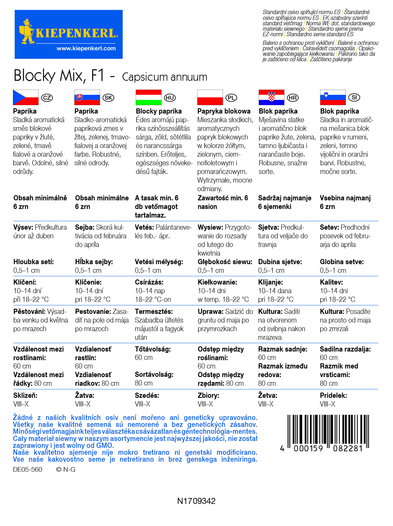 Sadržaj paketa:1 kom Miks slatke i aromatične paprike babure u žutoj, zelenoj, tamno ljubičastoj i narančastoj boji. Pravi užitak ne samo oku. Ljubičasta "Marvas" je ljuta i aromatična, žuta "Coletti" je slatka i aromatična, zelena "Benigo" je hrskava i velika, a narančasta "Milena" je nježna i voćna. Sve četiri paprike su hibridne i otporne na sve bitnije viruse kojje ih napadaju. Težina ploda može biti cca. 150-180 g. Visina biljke je cca 50 cm. Sadržaj paketa: min. 6 sjemena.