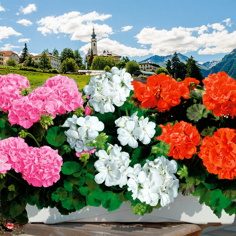 Sadržaj paketa:3 kom Pelargonija Sunrise® Clarissa očarati će Vas svojim velikim, atraktivnim, poluduplim cvjetovima koji će svojom bjelinom privući svačiji pogled. Tamnozeleni listovi daju odličan kontrast upadljivo bijelim cvjetovima zato preporučujemo saditi u cvjetne gredice, balkonske posude ili tegle.