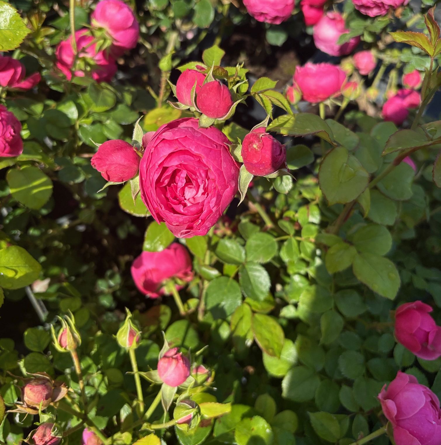 Pomponella ružićasta park ruža, u kontejneru