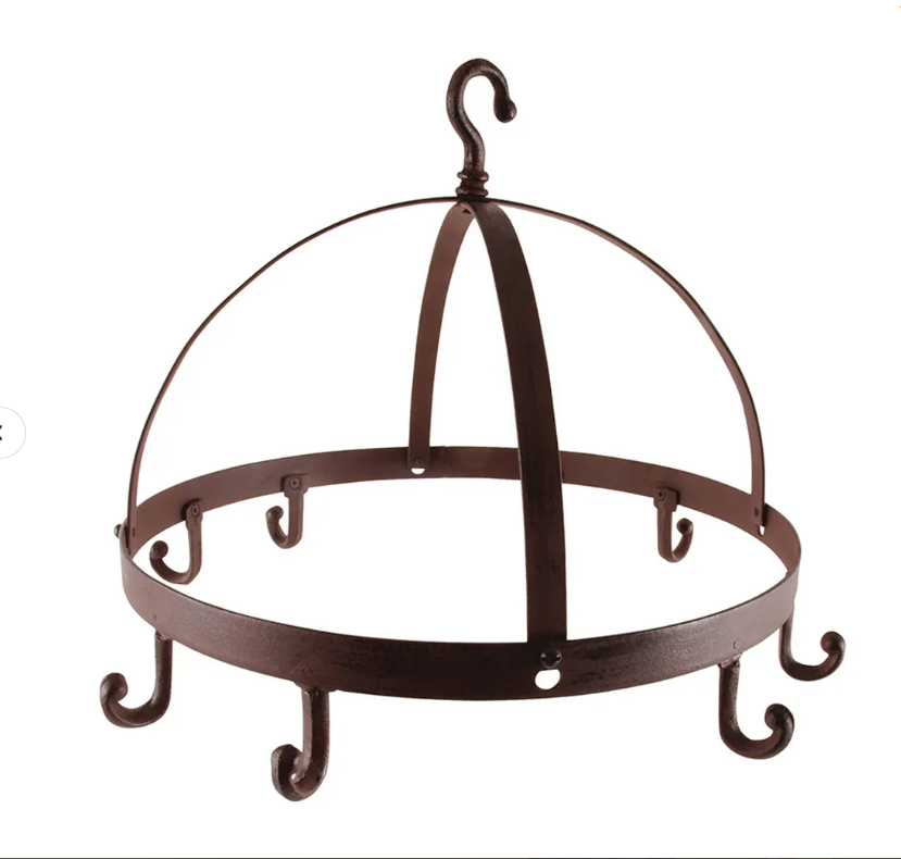 Ova atraktivna, okrugla vješalica od lijevanog željeza idealna je za skladištenje kuhinjskog alata ili sušenje cvijeća i drugih biljaka. Mjera: visina: 29 cm, promjer: 42 cm. Težina: 1 kg